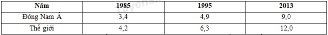 Dựa vào bảng số liệu đã cho, áp dụng công thức tính tỉ trọng trong 1 tổng = giá trị thành phần / Tổng *100%