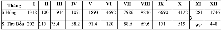 LƯU LƯỢNG DÒNG CHẢY CỦA SÔNG HỒNG VÀ SÔNG THU BỒN