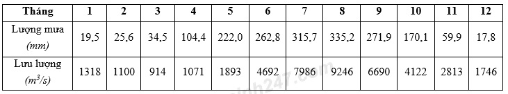 Bảng lượng mưa (mm) và lưu lượng (m3/s) theo các tháng trong năm lưu vực sông Hồng (Trạm Sơn Tây)