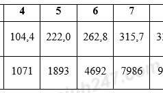 Cho bảng số liệu