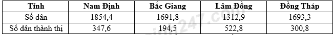 Theo bảng số liệu, nhận xét nào sau đây đúng khi so sánh tỉ lệ dân thành thị trong dân số của các tỉnh năm 2018?