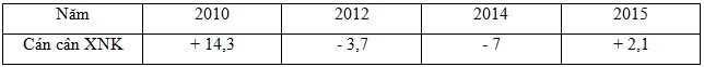 => Áp dụng công thức tính được cán cân xuất nhập khẩu lần lượt qua các năm là:
