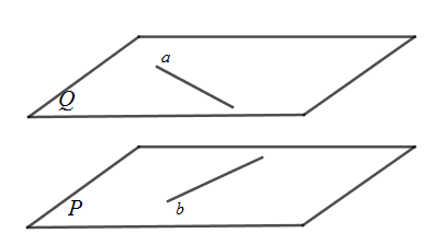 Mệnh đề 2) : Sai, ví dụ: (với (P) // (Q), \(a\subset (P),\,\,b\subset (Q)\) nhưng a không song song b