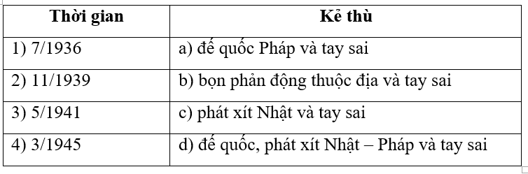 4) 3/1945 -------- c) phát xít Nhật và tay sai
