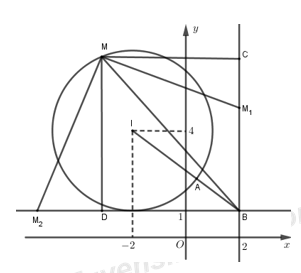 Ở đó \(B\left( {2;1} \right),I\left( { - 2;4} \right)\)