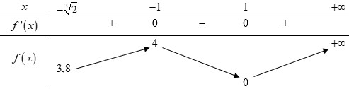 Từ BBT \( \Rightarrow f\left( x \right) \ge 0\,\,\forall x > - \sqrt[3]{2}\).