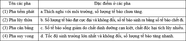 Cho các ý sau về quá trình sinh trưởng của quần thể vi sinh vật trong nuôi cấy không liên tục