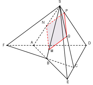 Vậy thiết diện của hình chóp khi cắt bởi \(mp\left( \alpha \right)\) là tứ giác MNPQ.