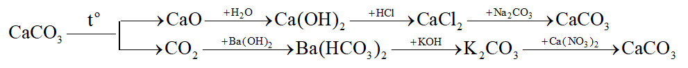 (1) CaCO3 \(\xrightarrow{{{t^o}}}\) CaO + CO2