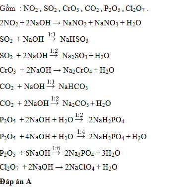 cho dãy các oxit : NO2 , Cr2O3 , SO2 , CrO3 , CO2 , P2O5 , Cl2O7 , SiO2 , CuO. Có bao nhiêu oxit trong dãy tác dụng được với dung dịch NaOH loãng ?