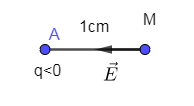 a. Điện tích đặt tại A là điện tích âm nên vectơ cường độ điện trường đặt tại M cách A 1 cm được xác định như hình dưới