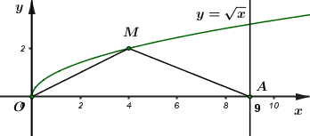 Cho đồ thị ( C ):y = căn x . Gọi M là điểm thuộc ( C ),,,A( 9;0 ). Gọ