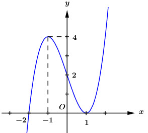 \( \Rightarrow f\left( x \right) = 2 \Rightarrow \left[ \begin{array}{l}x = a \in \left( { - 2; - 1} \right)\\x = 0\\x = b \in \left( {1; + \infty } \right)\end{array} \right.\) (các nghiệm này đều không trùng với nghiệm của tử).