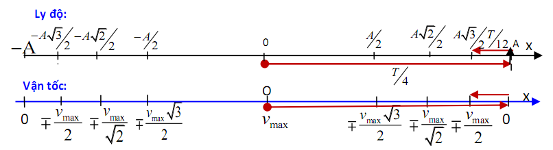 -Từ đồ thị ta thấy vật lúc đầu có vận tốc cực đại (VTCB) và giảm về 0 (vị trí biên dương x= A) rồi theo chiều âm đến vị trí có v = -8π /2 = - vmax/2 (x = 32A) với thời gian tương ứng là 2/3 s.