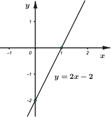 Vậy đường thẳng \(\left( d \right):\,\,\,y = 2x - 2\) cắt trục hoàn tại điểm \(\left( {1;\,\,0} \right)\) và cắt trục tung tại điểm \(\left( {0; - 2} \right).\)
