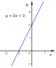 Đồ thị hàm số \(y = 2x + 2\) là đường thẳng đi qua hai điểm có tọa độ \(\left( {0;2} \right)\)và \(\left( { - 1;0} \right)\)