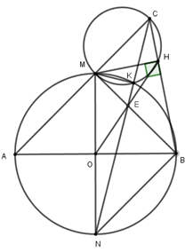 Cho đường tròn \(\left( O \right)\) có hai đường kính \(AB\) và \(MN\) vuông góc với nhau. Trên tia đối của tia \(MA\) lấy điểm \(C\) khác điểm \(M\). Kẻ \(MH\) vuông góc với \(BC\) (\(H\) thuộc \(BC\)).