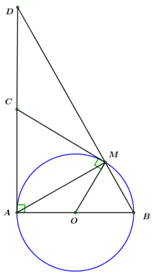 Cho đường tròn \(\left( O \right)\) đường kính \(AB,\) trên đường tròn \(\left( O \right)\) lấy điểm \(M\) không trùng với \(A\) hoặc \(B.\) Hai tiếp tuyến của đường tròn \(\left( O \right)\) tại \(A\) và \(M\) cắt nhau tại điểm \(C.\)