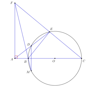 b) Gọi \(M\) là giao điểm thứ hai của \(FB\) với đường tròn \(\left( O \right).\) Chứng minh \(DM \bot AC.\)