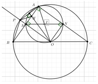 Cho đường tròn (O;R) ( đường tròn tâm O, bán kính R) và điểm A cố định nằm trên đường tròn (O;R). BC là một đường kính thay đổi của đường tròn (O;R) và không đi qua điểm A. Đường tròn đường kính AO cắt các đoạn AB, AC tại các điểm thứ hai tương ứng là M, N. Tia OM cắt (O;R) tại điểm P. Gọi H là trực tâm của tam giác AOP. Chứng minh rằng: