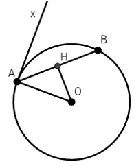 \(\Rightarrow \widehat{xAB}=\frac{1}{2}\widehat{AOB}=\frac{1}{2}{{.120}^{0}}={{60}^{0}}\).