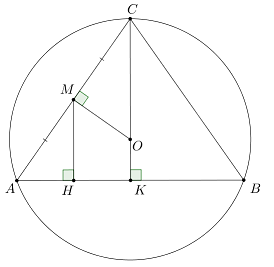 Như vậy, \(CK\) vừa là đường cao, vừa là trung tuyến của tam giác \(ABC,\) cho nên \(\Delta ABC\) cân tại \(C.\)