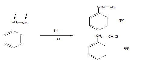 Cho etylbenzen tác dụng với Cl2(as) theo tỉ lệ 1:1 thì thu được bao nhiêu sản phẩm?