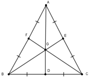 Các tia AG, BG và CG cắt BC, AC, AB lần lượt tại D, E, F thì D, E, F theo thứ tự là trung điểm của BC, AC, AB.