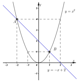 Cho hai hàm số \(y = {x^2}\) và \(y =  - x + 2.\)