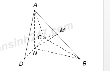 Lại có \(\Delta ACD=\Delta BCD\,\,\left( c.c.c \right)\Rightarrow AN=BN=\sqrt{A{{C}^{2}}-C{{N}^{2}}}=\sqrt{{{a}^{2}}-{{x}^{2}}},\) mà \(A{{B}^{2}}=A{{N}^{2}}+B{{N}^{2}}.\)