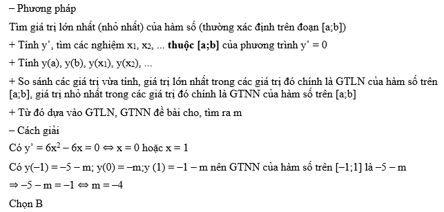 Cho hàm số y = 2x3 – 3x2 – m. Trên [–1;1] hàm số có giá trị nhỏ nhất là -1. Tính m?