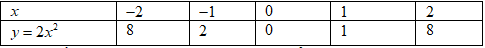Vậy đồ thị hàm số \(y = 2{x^2}\) là parabol đi qua 5 điểm \(\left( { - 2;8} \right);\left( { - 1;2} \right);\left( {0;0} \right);\left( {1;2} \right);\left( {2;8} \right)\)