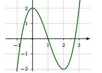\(\left\{ {\begin{array}{*{20}{c}}{f(0) = 2}\\{f(1) = 0}\\{f( - 1) = - 2}\\{f(2) = - 2}\end{array}} \right. \Leftrightarrow \left\{ {\begin{array}{*{20}{c}}{d = 2}\\{a + b + c + d = 0}\\{ - a + b - c + d = - 2}\\{8a + 4b + 2c + d = - 2}\end{array}} \right. \Leftrightarrow \left\{ {\begin{array}{*{20}{c}}{d = 2}\\{a + b + c = - 2}\\{ - a + b - c = - 4}\\{8a + 4b + 2c = - 4}\end{array}} \right. \Leftrightarrow \left\{ {\begin{array}{*{20}{c}}{d = 2}\\{a = 1}\\{b = - 3}\\{c = 0}\end{array}} \right.\)