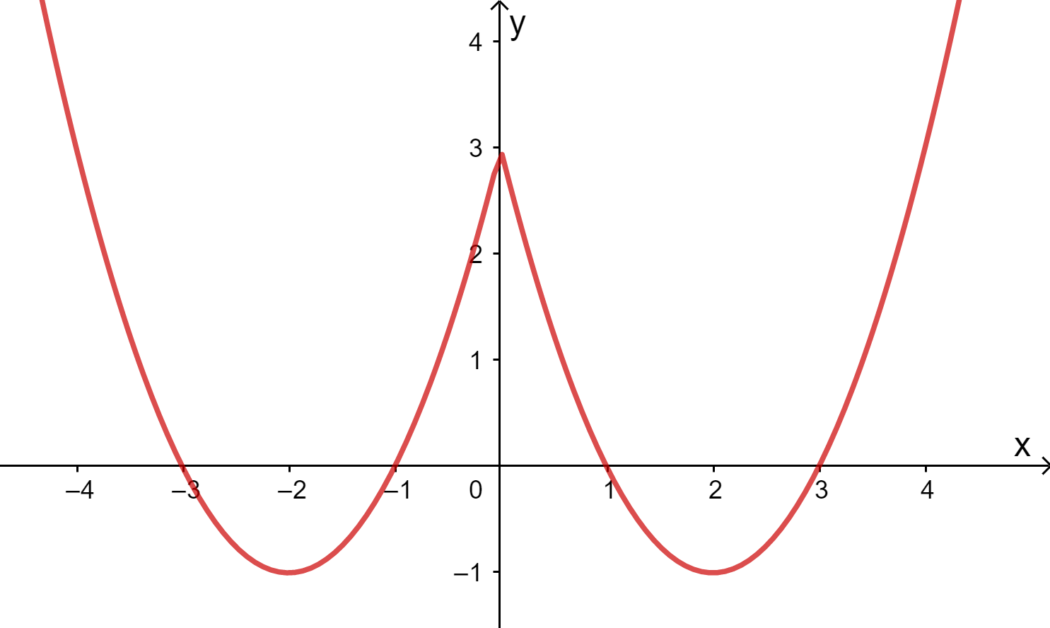 Vậy để phương trình \(a{x^2} + b\left| x \right| + c = m + 1\) có bốn nghiệm phân biệt thì \(m \in \left\{ { - 1;0;1} \right\}\).