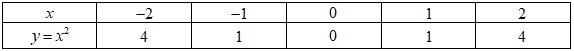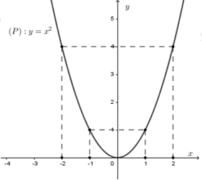 Đồ thị hàm số \(y = {x^2}\) là parabol \(\left( P \right)\) đi qua các điểm \(\left( { - 2;4} \right),\left( { - 1;1} \right),\left( {0;0} \right),\left( {1;1} \right),\left( {2;4} \right)\)