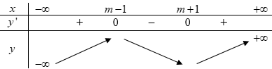 Ta có \(\Delta ' = {m^2} - {m^2} + 1 = 1 > 0\), khi đó phương trình \(y' = 0\) có 2 nghiệm phân biệt \(\left[ \begin{array}{l}{x_1} = m + 1\\{x_2} = m - 1\end{array} \right.\).