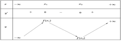 \(f'\left( x \right) = 0\) có 2 nghiệm phân biệt \({x_1},\,{x_2}\left( {{x_1} < {x_2}} \right)\)
