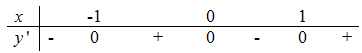 \(y' = 0 \Leftrightarrow 4{x^3} - 4x = 0 \Leftrightarrow \left[ \begin{array}{l}x = 0\\x = \pm 1\end{array} \right.\)