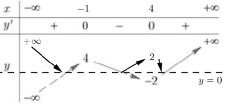 Từ đó ta suy ra đồ thị hàm số \(y=\left| f\left( x-1 \right) \right|\) có BBT như sau: