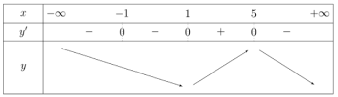 Ta có \({f}'\left( x \right)={{\left( x+1 \right)}^{2}}\left( x-1 \right)\left( 5-x \right)\,\,\xrightarrow{{}}\,\,{f}'\left( x \right)=0\Leftrightarrow \left[ \begin{align} & x=\pm \,1 \\ & x=5 \\ \end{align} \right..\)