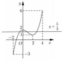Dựa vào đồ thị hàm số ta thấy đường thẳng \(y=\frac{5}{3}\) cắt đồ thị hàm số \(y=f\left( x \right)\) tại \(3\) điểm phân biệt.