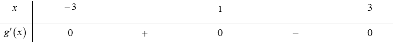 Với \(x<-3\) ta có: \(f'\left( x \right) Bảng xét dấu của \({g}'\left( x \right)\) Dựa vào bảng xét dấu, ta được \(\underset{\left( -\,3;3 \right)}{\mathop{\max }}\,g\left( x \right)=g\left( 1 \right).\) Chọn B.
