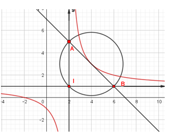 Do tam giác \(IAB\) vuông tại \(I\) nên bán kính đường tròn ngoại tiếp tam giác là \(R=\frac{AB}{2}\).