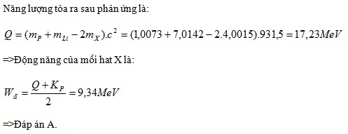 Cho hạt prôtôn có động năng KP = 146MeV bắn vào hạt nhân Li đứng yên. Hai hạt nhân X sinh ra giống n