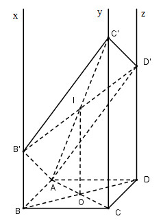 Gọi O là tâm hình bình hành ABCD, I là trung điểm của B’D’ \(I \in B'D'\)