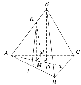 Qua M kẻ \(IJ\parallel BC\) với \(I\in AB,\text{ }J\in AC\); kẻ \(MK\parallel SO\) với \(K\in SA.\)