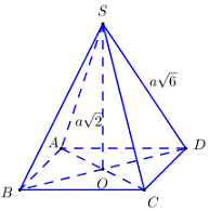 Cho hình chóp đều \(S.ABCD\) có chiều cao bằng \(a\sqrt 2 \) và độ dài cạnh bên bằng \(a\sqrt 6 \). Tính thể tích khối chóp \(S.ABCD\).