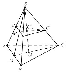 Gọi P là trung điểm của SC, \(N = M'P \cap SG\). Ta dễ dàng chứng minh được N là trung điểm của SG.