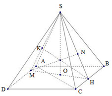 Xét tam giác \(SHM\) có hai đường cao bằng nhau \(MN = HK\) nên tam giác \(SHM\) cân tại S. Lại có \(SO \bot MN \Rightarrow O\) là trung điểm của \(MN.\)
