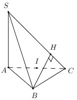 Cho hình chóp \(S.ABC\) có đáy \(ABC\) là tam giác vuông cân tại \(A,\,\,SA\) vuông góc với đáy. Gọi \(I\) là trung điểm \(AC\) và \(H\) là hình chiếu vuông góc của \(B\) lên \(SC\). Khi đó \(d\left( {B;\left( {SAC} \right)} \right)\) bằng:
